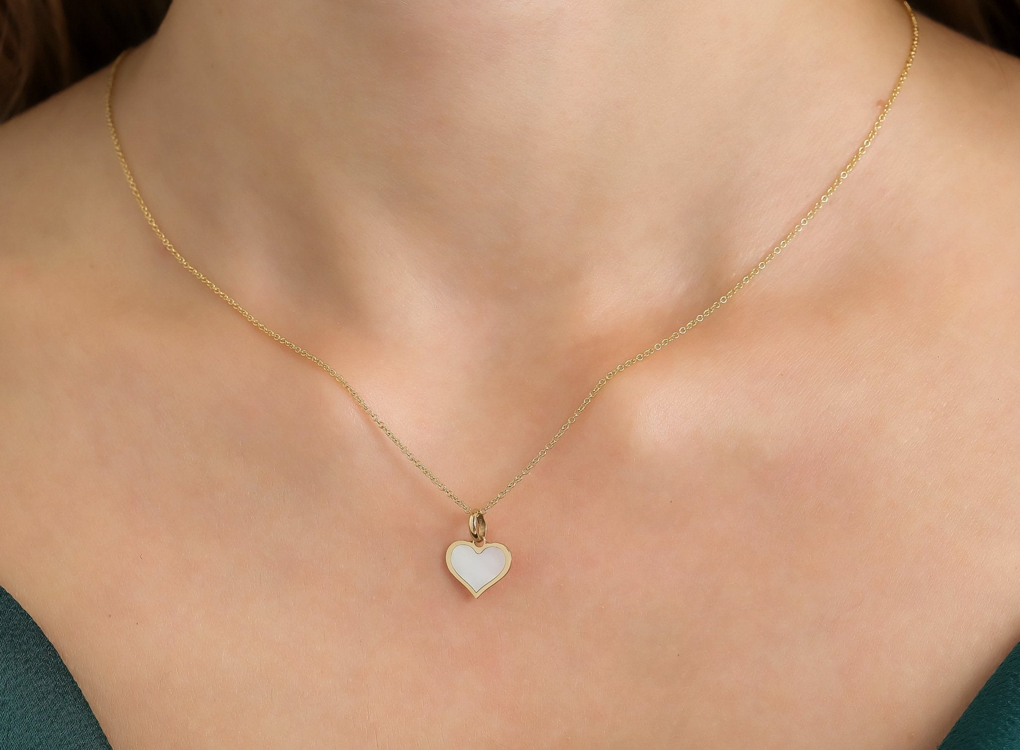 14K Yellow Gold Minimalist Mother of Pearl Heart Necklace