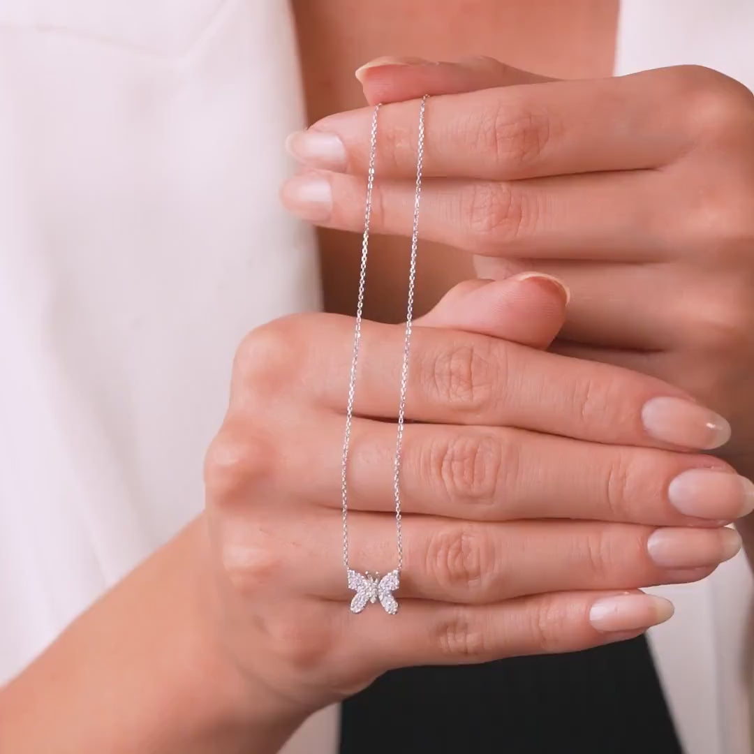 Collar de mariposa minimalista de oro blanco macizo de 14 quilates