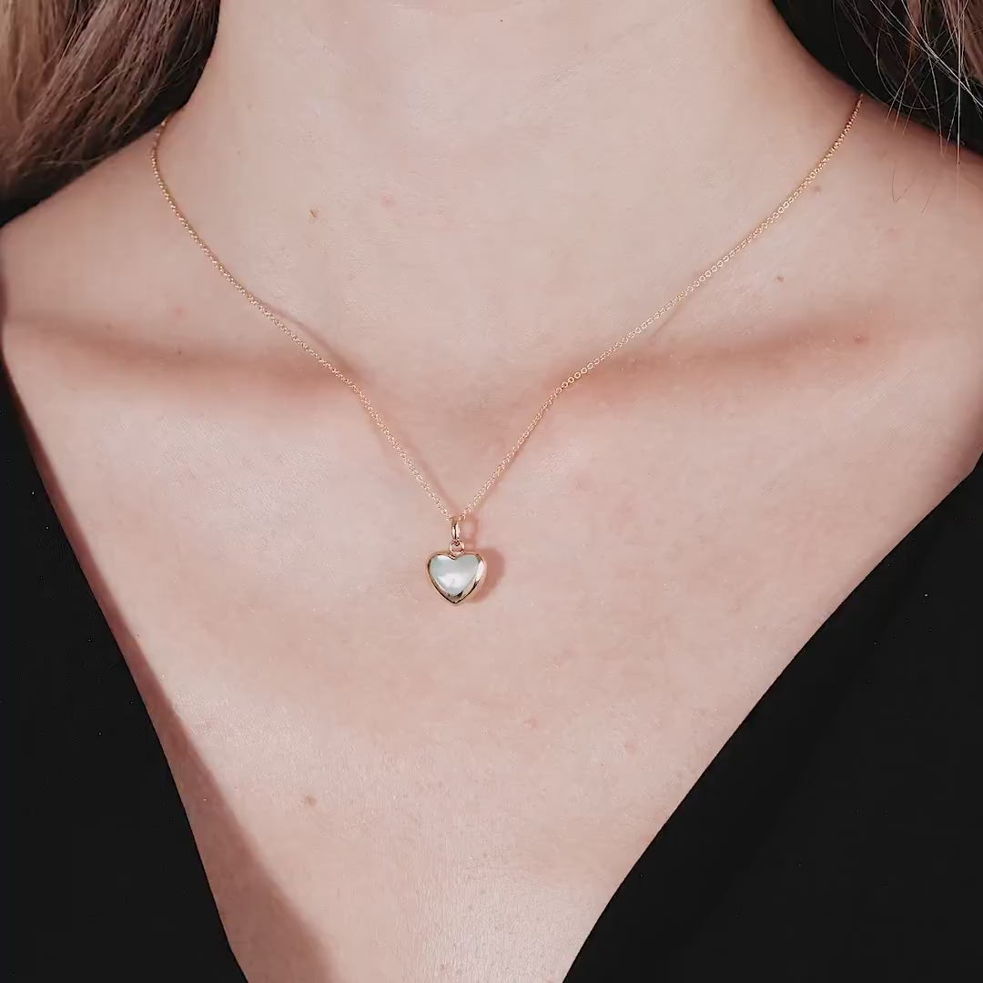 Colgante o collar de corazón inflado de nácar de oro amarillo de 14 quilates