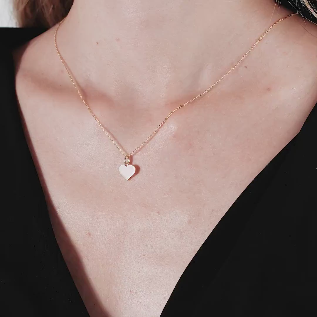 Pendentif ou collier plat en forme de cœur en nacre en or jaune 14 carats